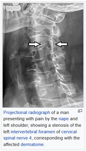 Cervical radiculopathy is often referred to as a pinched nerve in the neck.