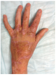 Example of a burn to the back of the hand